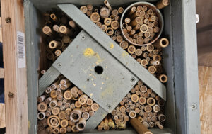 Bee larva cleaning starts now. We empty the bee nesters, remove the larvae and brush and wipe them to remove mites and bee poo. We then store them in a cool place until spring, when they go back into the bee nesters’ special drawer in which they will hatch – supporting a healthy essential bee population.